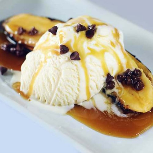 GRILLED BANANA W/ CARAMEL & VANILLA ICE CREAM